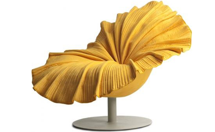 菲律宾设计师 Kenneth Cobonpue 设计了此款子名叫「开花 (Bloom) 」的椅子(Bloom Easy Armchair)。拟态一朵花盛开的模样,采用纯手工工艺将微纤维织物缝入碗状树脂椅座上,听起来就觉得很有科技感对吧,椅子下面的圆盘基座由钢铁制成,所以产品本身是十分的牢固安全的。