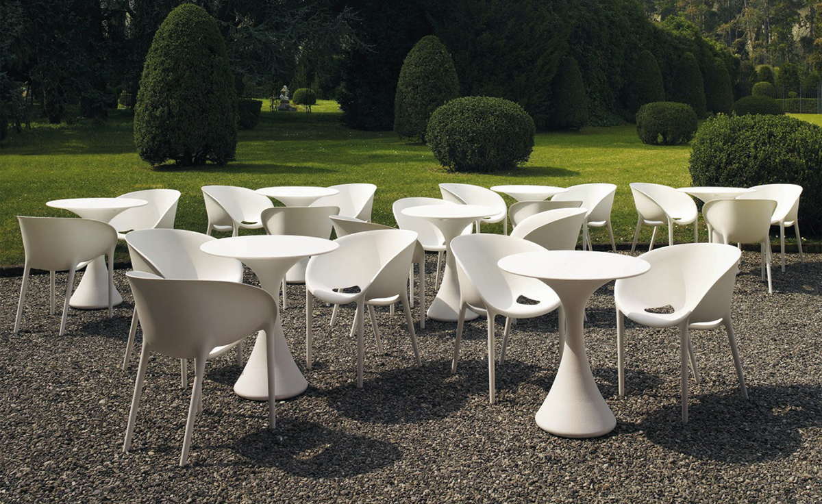 Kissi Kissi Table(亲亲桌仕女桌)是意大利米兰著名家具设计师Miki Astori设计的一款时尚经典的桌几。这款圆桌造型轻巧,无锐角圆弧造型,曲线细致,有如一位窈窕淑女。本品采用聚乙烯塑料材质,室内外都可以使用。