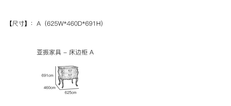 亚振家具 - 床边柜 产品尺寸/示意图