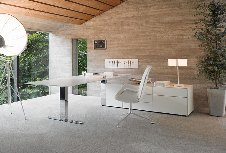 Exec_V是一款可调节高度的办公室系列,灵活的升降功能是这款产品的代表性功能。你既可以坐着也可以站着,完全符合人体工程学和对健康的追求。桌面看起来像是漂浮在底座和底座上,直线和角、宽和立方体的形状形成一种和谐的相互作用。电缆被包裹在升降底座上,作用于包括班台、副柜、会议桌等等。Exec_V是一款具有代表性和使用性的优秀升降班台