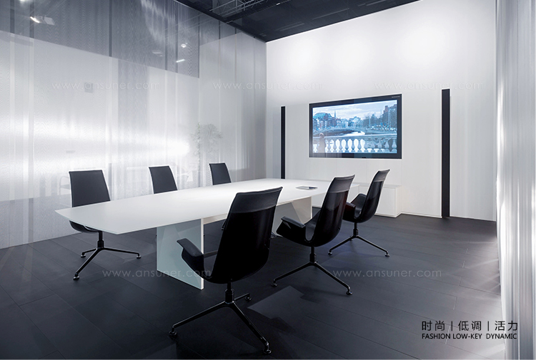 召开会议,是集中和沟通解决问题的方法。Scale-Media系列解决了会议场所问题。无论是大型会议还是小型会议,不同的会议桌规格可以很好的解决所有问题。从矩形到船形,再到椭圆形和梯形桌面,都可以选择镶面或者漆面,这也是scale - media系列定制会议桌的关键.