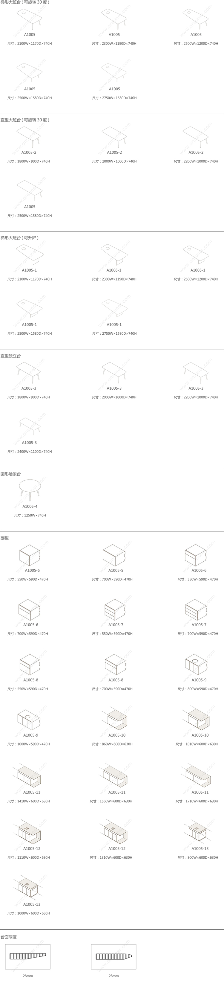 KEYPIECE COMMUNICATION DESK. 系列尺寸/示意图
