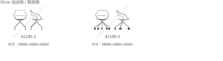 Occo 洽谈椅/职员椅 系列尺寸/示意图