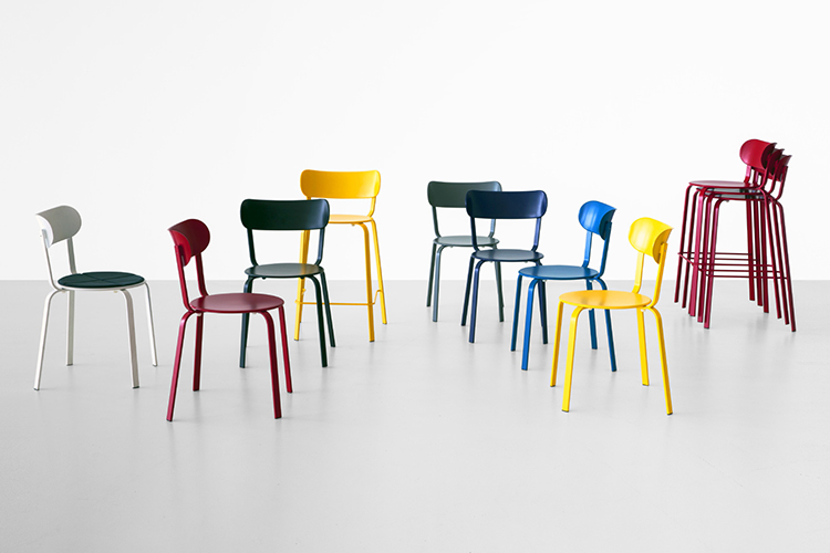 STIL,以其简单的线条,完全由涂漆的金属的,并通过标志性小酒馆椅子的启发,隐藏高度精制的细节。