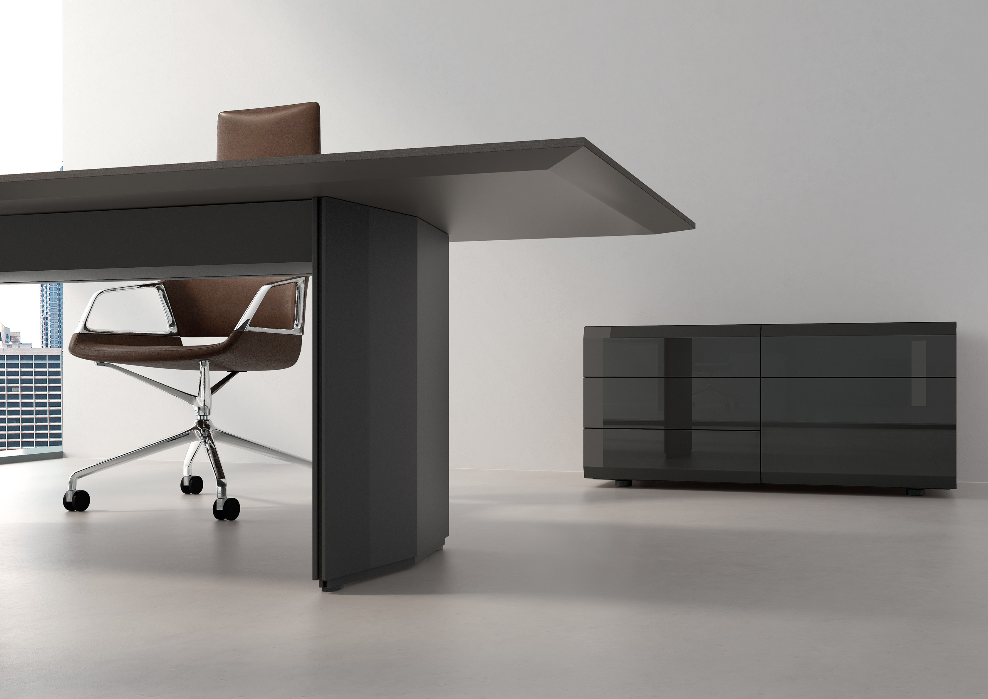 精心设计的工作表面,可调节到不同的高度,其形式在第一眼看上去就不一样了。 不显眼的功能细节连接优雅的外观和出色的做工,提供了绝对的稳定和最大的底部空间。桌面似乎漂浮在基座上, 有各种各样的尺寸,饰面和精致的贴面。电缆和驱动器隐藏在优雅的漆面漆的侧面板后面。匹配的容器和侧板是完美的补充,既增加了功能又增加了气氛。