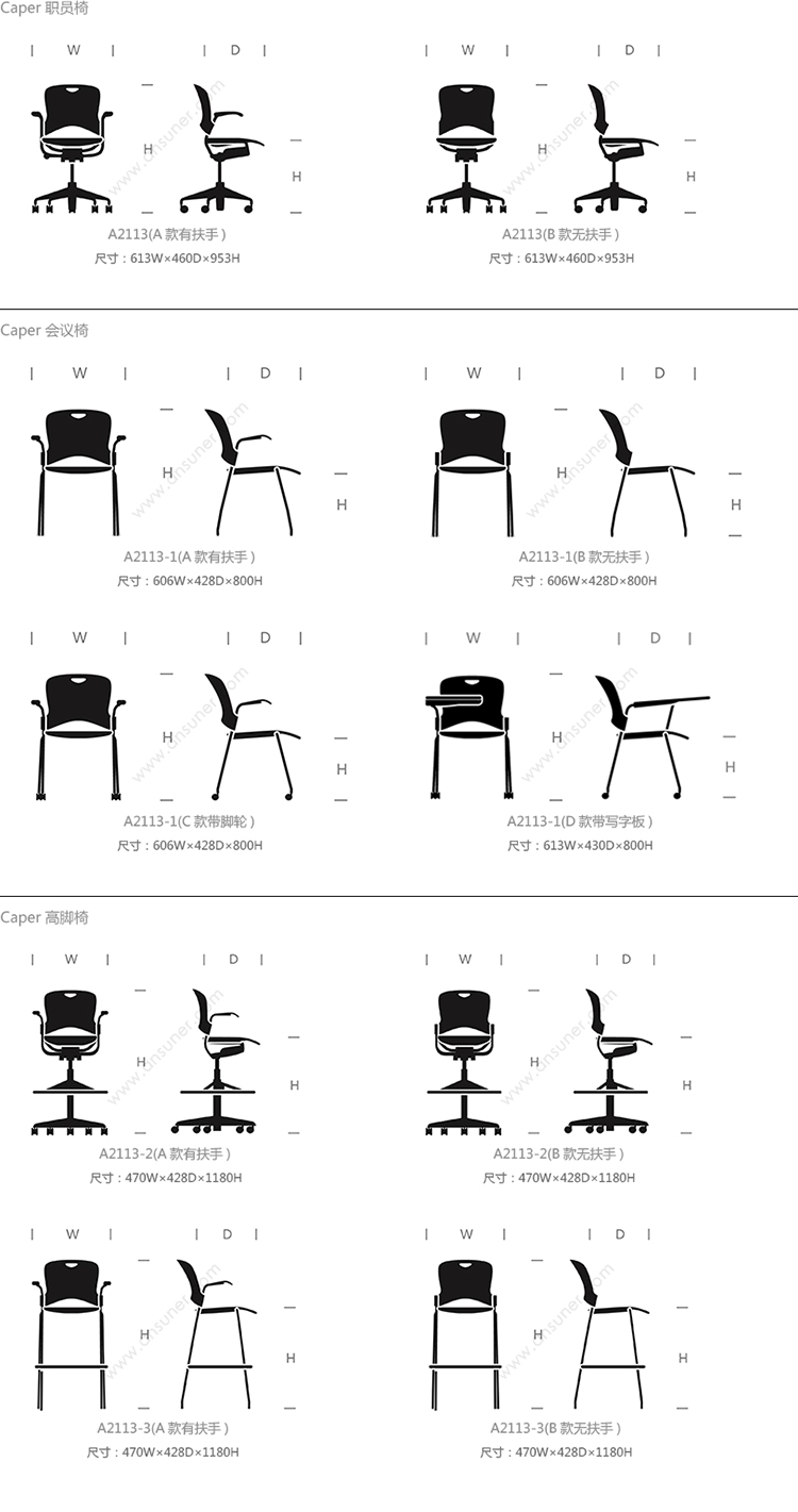Caper 职员椅 系列尺寸/示意图