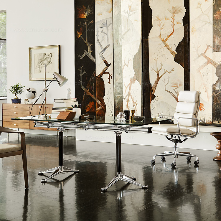 独特的中央铝制横梁使这款由Bruce Burdick设计的会议桌拥有出众的外观。这款精致的会议桌成套提供,也可以选配组件定制(包括玻璃或石制的两种顶面形状),外观与众不同,功能强大,适应性极佳。
