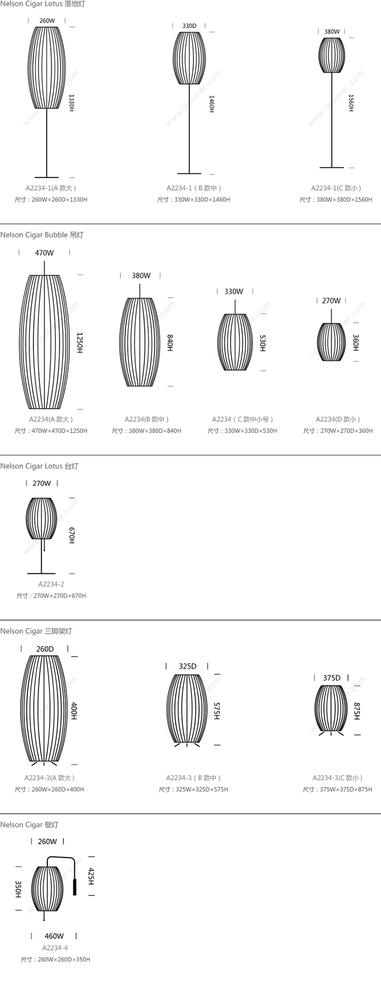 创意家具 - 灯饰|落地灯|办公家具|设计师家具|纳尔逊雪茄形莲花落地灯