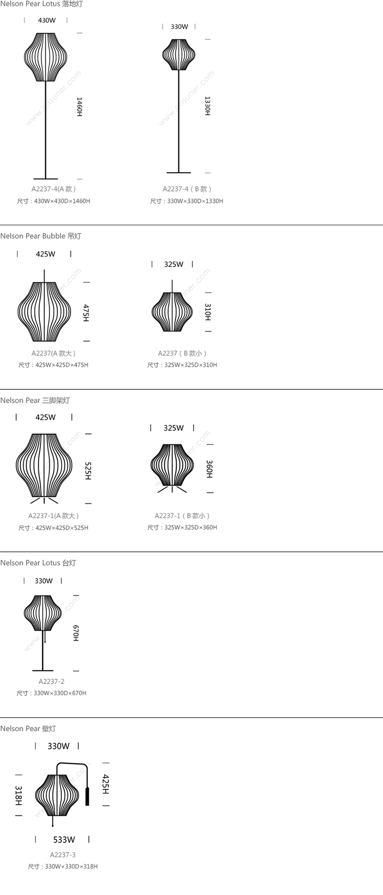 Nelson Pear Lotus 系列尺寸/示意图