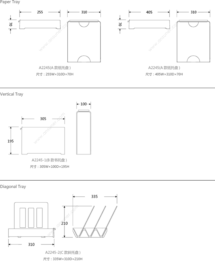 Paper Tray 系列尺寸/示意图