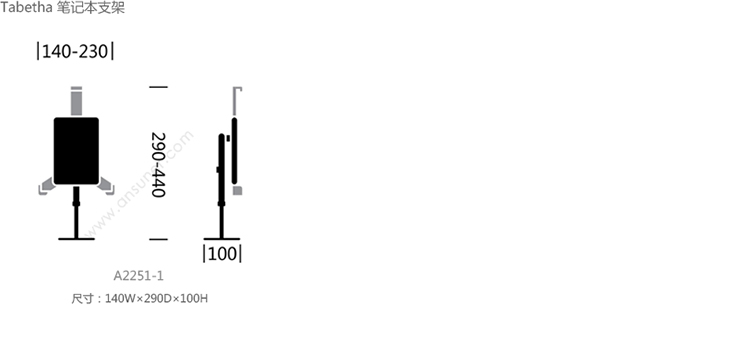 Tabetha 笔记本支架 系列尺寸/示意图