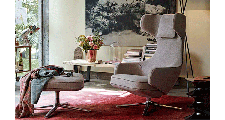 grand repos lounge chair and ottoman(grand repos 休闲椅&脚踏)由设计大师Antonio Citterio所设计的独特的,绝无仅有的休闲椅系列,椅子的创作面临的挑战如同伊姆斯夫妇当初设计著名的伊姆斯休闲椅一样,但正因如此,才能成为绝世经典。grand repos系列休闲椅采用钢制铝合金脚架、聚氨酯海绵填充、高级布艺扪面,可随意调整坐姿和高度,也可以放平躺,配上舒适的羽毛衬垫,无论阅读或者休憩,都非常舒服,符合人体工学,高档舒适,是办公,会议的理想选择。意大利设计师和建筑师 Antonio Citterio赋予了这边椅子永恒的优雅气质与无与伦比的舒适,是当代设计的经典,无论用在办公、商业、家庭都是非常高贵大气的。