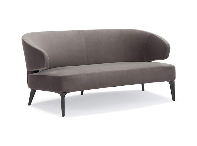 沙发的围裹式靠背特色十足,扶手线条与之完美呼应,以蓝灰色调呈现的压铸铝合金支脚尽展精致设计之美。