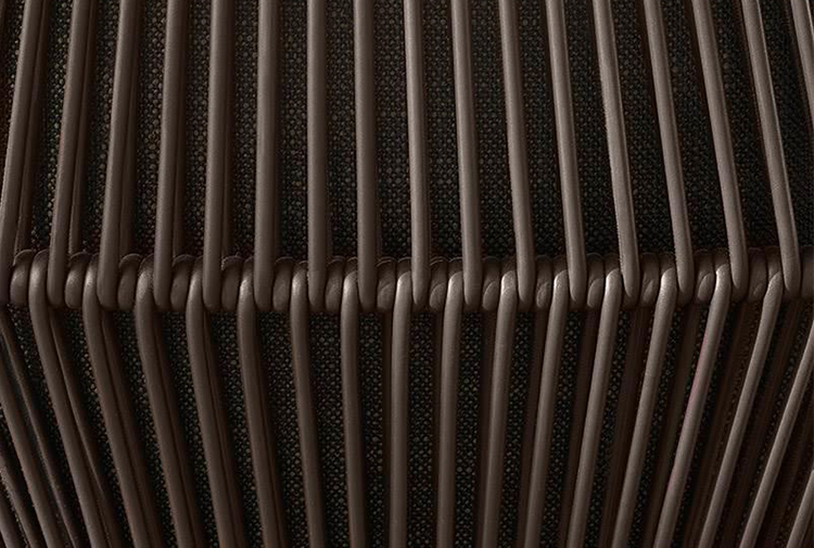 除去了2012年原版的填充物后,王子的“绳索”在室内展示了外壳的骨架,现在它的特点是由皮革覆盖的管状弦交织在一起。 设计灵感来自五十年代的美国现代主义,强调了锡色铝基通过复杂的压铸技术实现。扶手椅的柔软度由织物或皮革装饰的坐垫和靠垫突出。 米诺提产品的优势之一是对细节的剪裁讲究,这一点在圆形轮廓线的执行中得到了突出体现。圆形轮廓线的特点是贯穿整个皮革长度的独特接缝。王子的“绳索”室内有四种颜色——鸽灰色、灰色、烟草和深棕色——扶手椅可以有一个脚凳,上面有相同的风格标志。