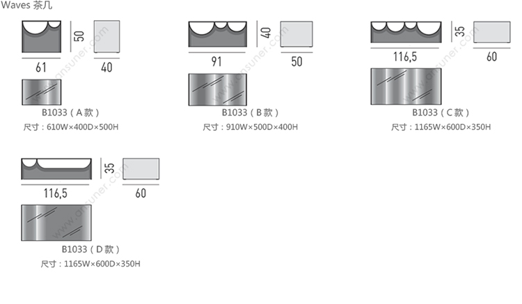 Waves 茶几 系列尺寸/示意图