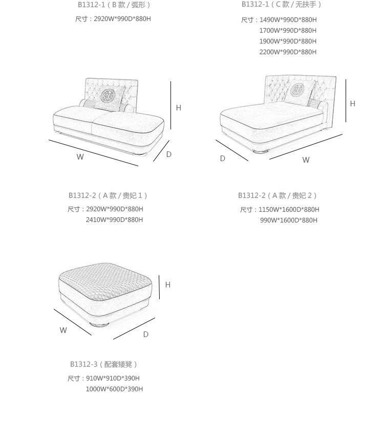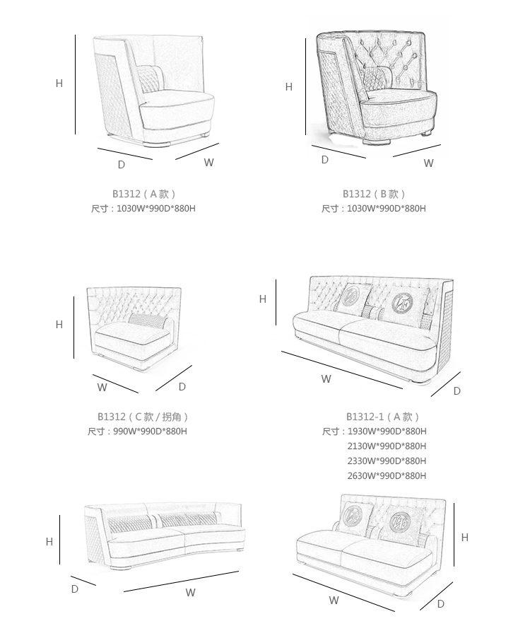 1930W*990D*880H(其余尺寸见详情)