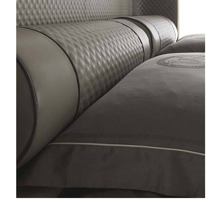 古典风格满足现代性在这床上流畅简洁的线条,丰富的床头板,优雅的刺绣和珍贵的拉链。