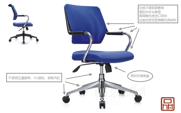 2、靠背蒙优质进口网布、坐垫优质定型棉蒙优质绒布。