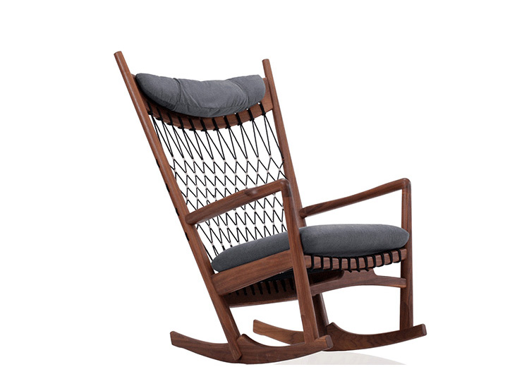 Rocking Chair(摇椅)是大师Hans J. Wegner设计的众多摇椅中的经典之作。摇椅具有简洁的线条,精准的的人体工学结构,是Hans J. Wegner在1944年为身怀六甲的妻子设计,扶手前端微微向外展开,是为让妻子方便起身。实木制成,轻便耐用,简约单纯,仍于潮流中立于不败之地,为Hans J. Wegner最受欢迎的经典作品之一。我们已经能从中感受到圈椅的影子。摇椅水曲柳制作,坐垫麻布软布(内部填充优质海绵),棉绳编织(有白色,黑色,棕红色可选)。