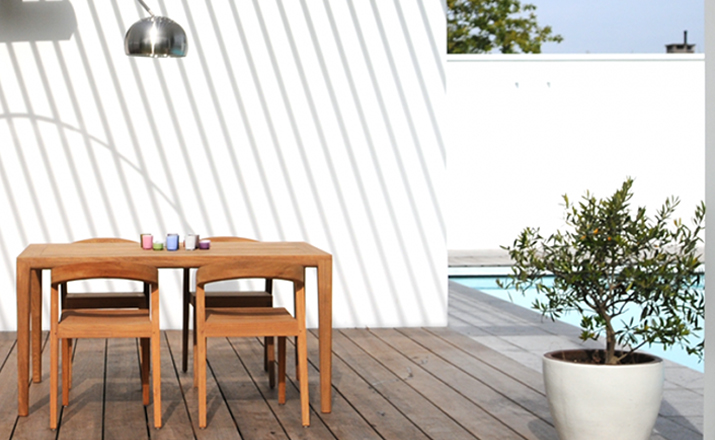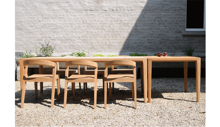 Elegant massive wooden table with an unique contemporary design,rounded edges at the table top and refined table legs.