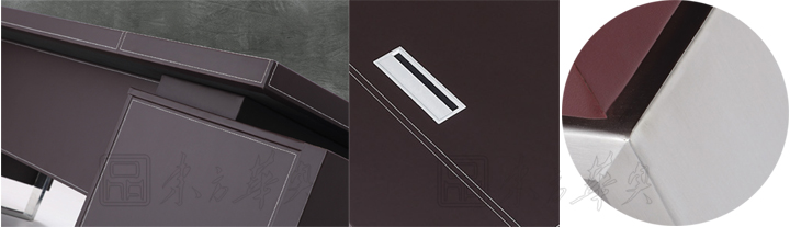 ※ 上图为大班台不同角度的展示,突出每个细节做工的精细,让我们对工艺的细腻产生美的视觉冲击。
