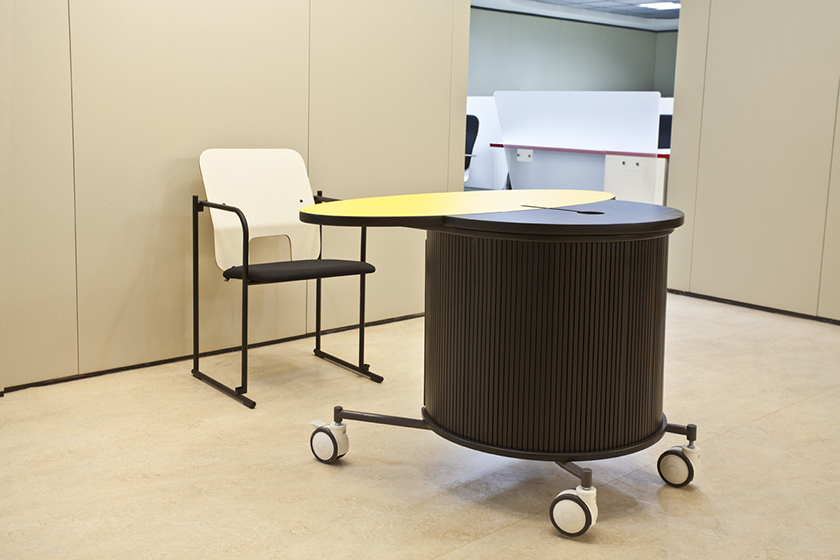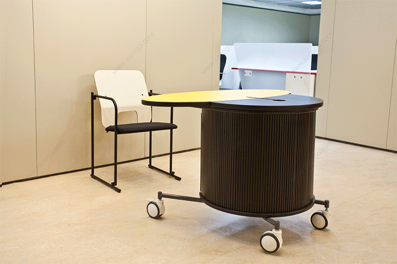 乔尼 · 雷诺于1999年设计开发了万维,专为放置电脑而用。造型设计突破传统束缚,卷帘门和活动轮的使用,便于开启做设备维护和移动使用。它在功能使用上不断增强性能,无论在办公室、公共查询区域和居家环境下,都可以合理使用。
