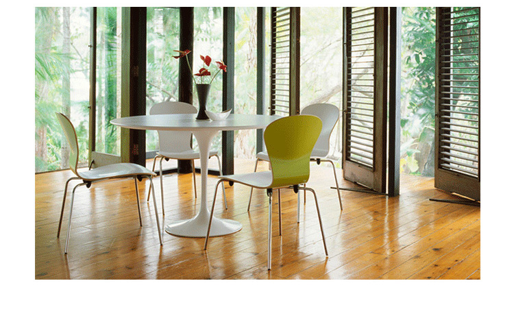 Tulip Dining Table(郁金香餐桌)是芬兰裔美国设计师Eero Saarinen在1956年设计的作品。优雅、清秀的桌脚配上天然的大理石桌面,极简却又完美。Tulip Dining Table(郁金香餐桌)是现代餐桌的代表作,作为家庭中使用餐桌、高档饭店中的餐桌和酒店中使用的餐桌都非常合适。作为著名家具设计师设计的作品设计品位自然不会低,这种餐桌设计出来的时候就被广泛的运用到了饭店、酒店和家庭中,成为当时最热销的餐桌之一,餐桌主要材料是玻璃钢(可选大理石),整张桌子是采用一次成型,中途不会出现裂缝,有质量保障,桌面平滑不会凹凸。