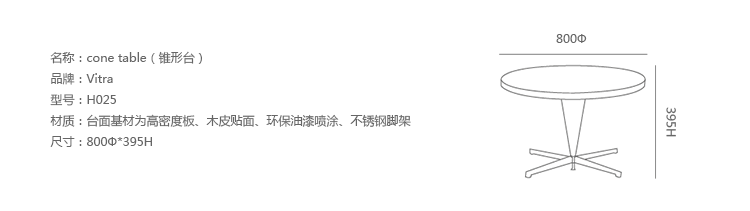 Cone Table(锥形台)是丹麦著名工业设计师Verner Panton设计的经典作品。Cone Table(锥形台)有着圆锥形的支柱和十字型不锈钢脚架,Verner Panton设计的锥形台可完美的搭配其同样式锥形椅或心锥形椅,外形独特,结构简单。当然,因其广泛的协调性,其看自由组合搭配其他休闲椅、 扶手椅和沙发,都不失现代,时尚和美观。