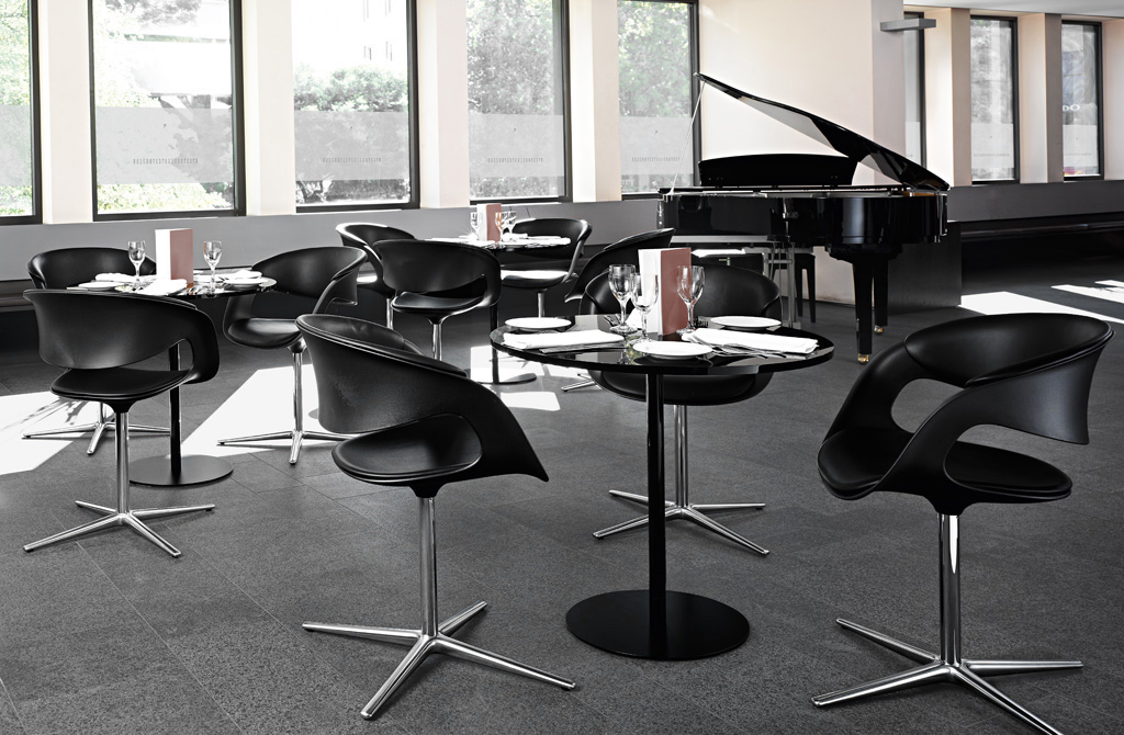 Lox茶几圆形或圆润的桌角,给人更安全的体验。无论是白色还是黑色玻璃桌面都散发着明亮的光泽。底座的形状是与桌面相呼应的的形状,与Lox系列座椅更为般配。同时适用于住宅区、办公室、餐厅或者酒吧。