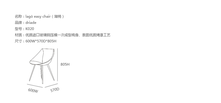 Lagò Easy Chair(湖椅)是设计大师Philippe Starck的经典作品,雅致轻盈的木质单椅融合经典元素与工艺技法,纯粹且具现代感,椅背与椅座的流线线条唯美而符合人体工学,舍弃浮夸的造型设计,却在细节中体现工艺之美。 优质进口玻璃钢压模一次成型椅身、表面优质烤漆工艺,使 湖椅成为一件集合艺术和美感的家具。