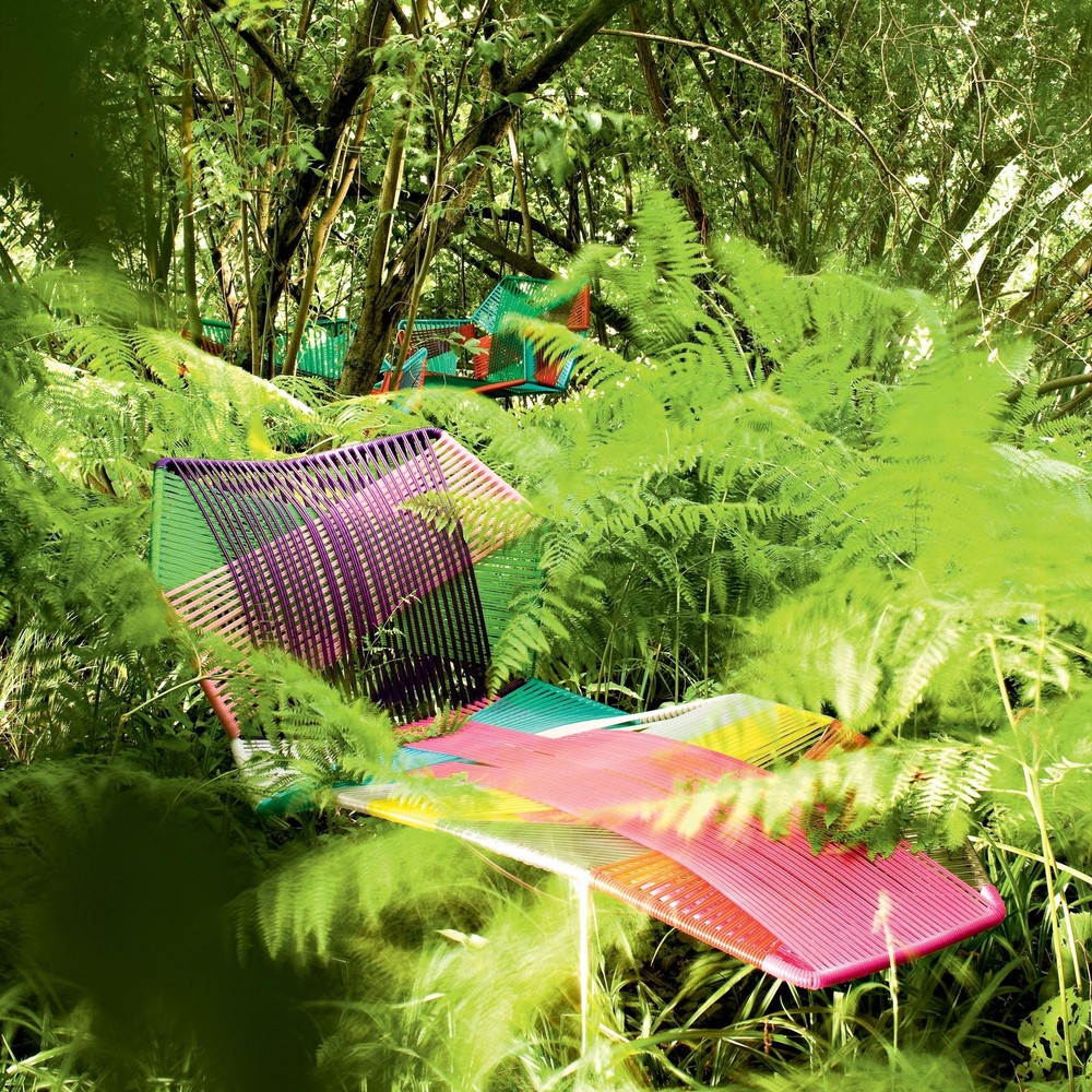 安蒂博迪(Antibodi)的钢管框架成为设计师用于创意改造的起点。框架被包裹和变换,座位根据所使用不同颜色的材料呈现不同的个性。两到三种颜色的线条以螺旋的方式将钢管包裹起来,形成了一种有趣的颜色复杂的设计。