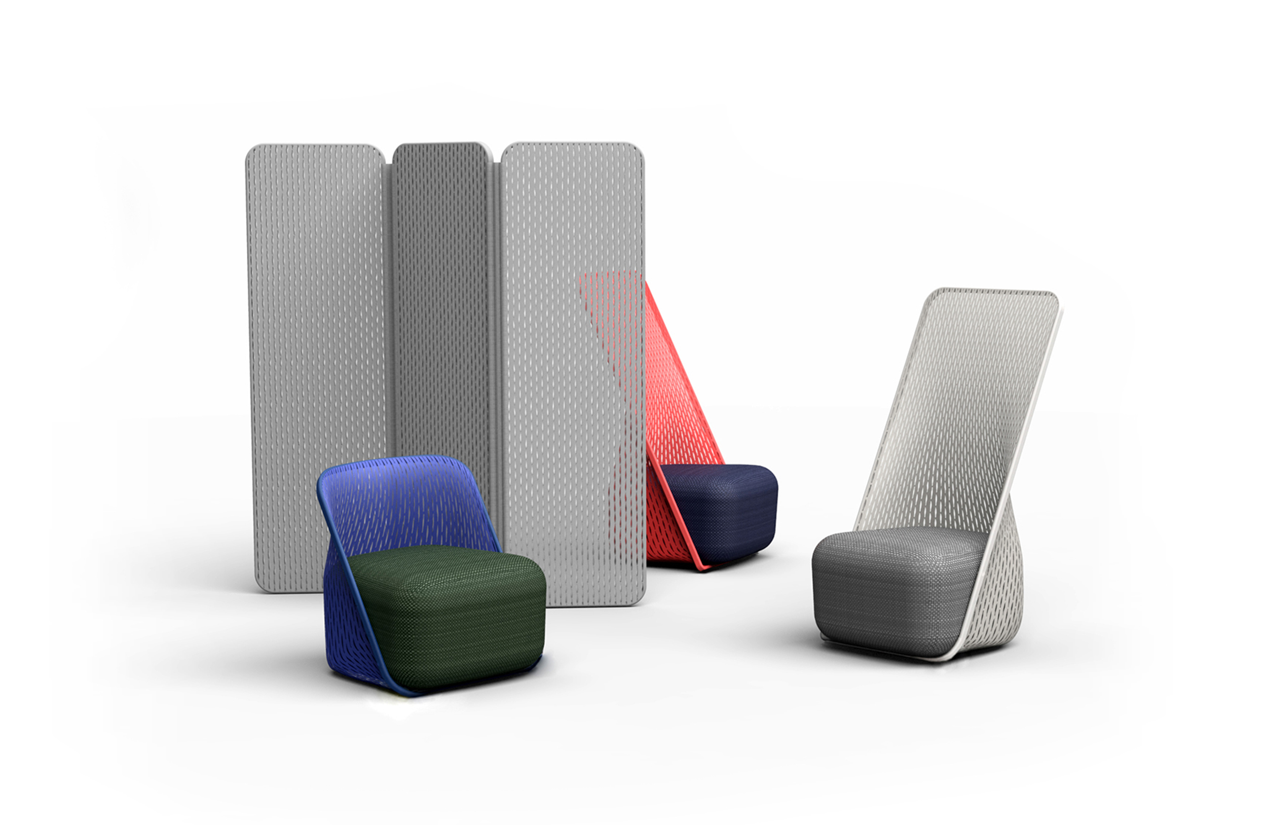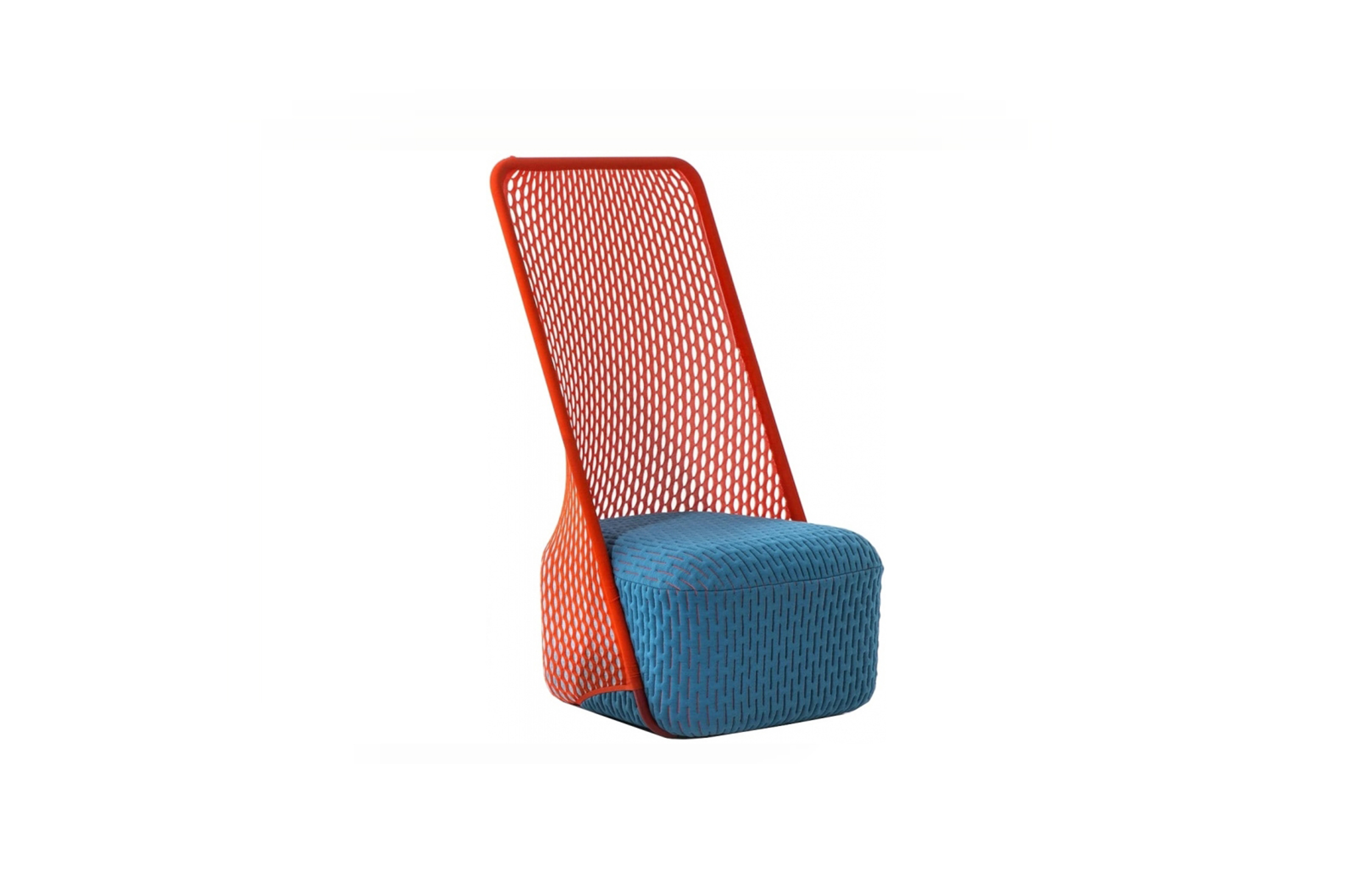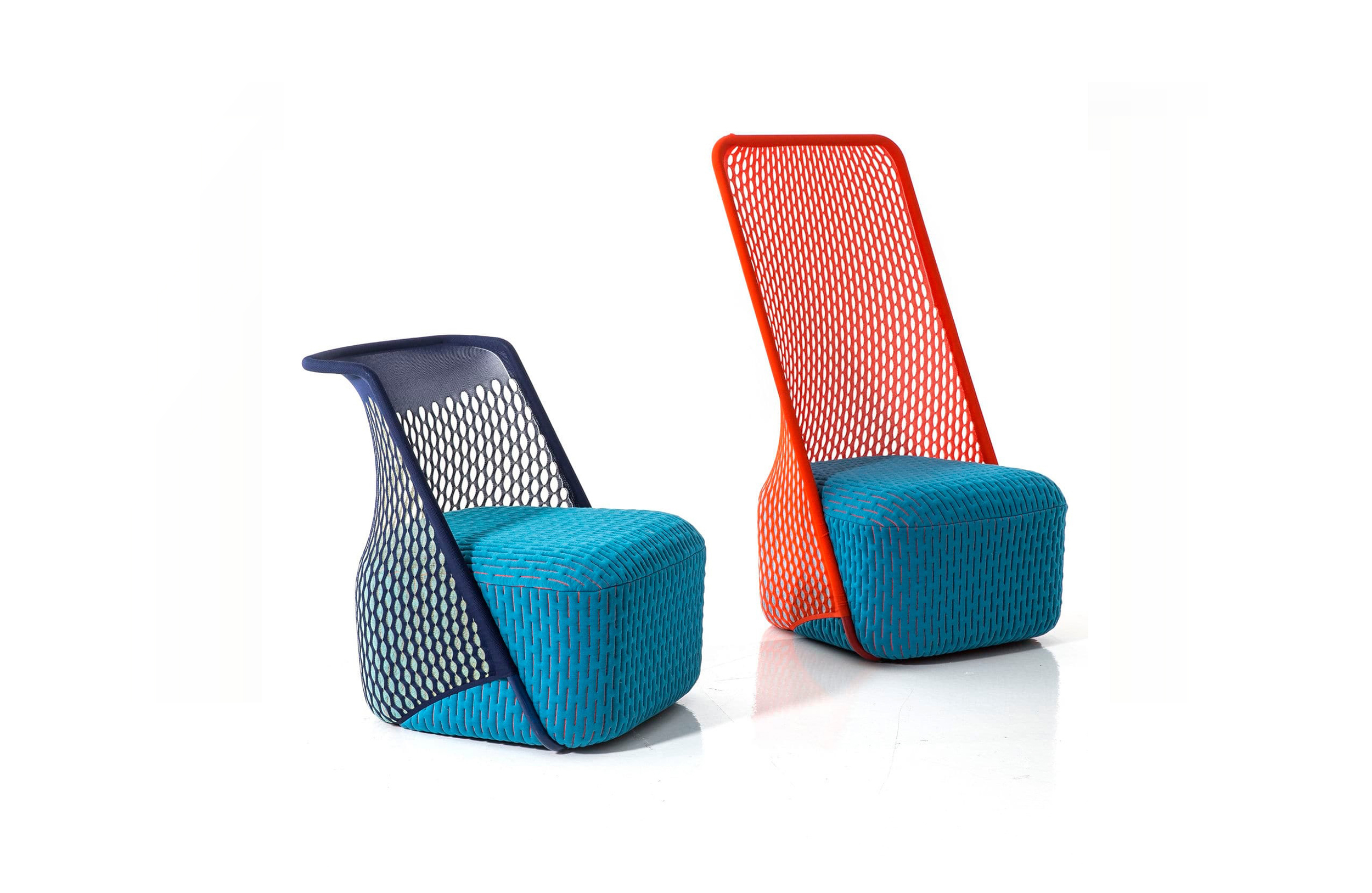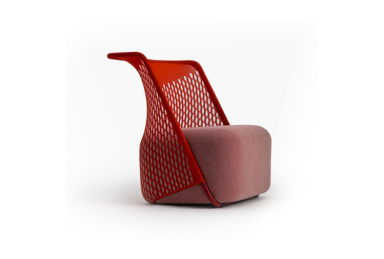 “摇篮”是两种类型座位的独特组合;一个网状结构吊床和一个传统的软垫沙发椅。扶手椅源于工作室的材料驱动、工艺主导、工业设计方法、网格材料的构建研究,以及传统座椅组件之间的关系研究。“摇床”采用了一种定制的剪裁模式,允许非弹性织物以三维的方式进行。这允许正确的张力,舒适地支持身体和视觉上和身体上减少产品的重量。