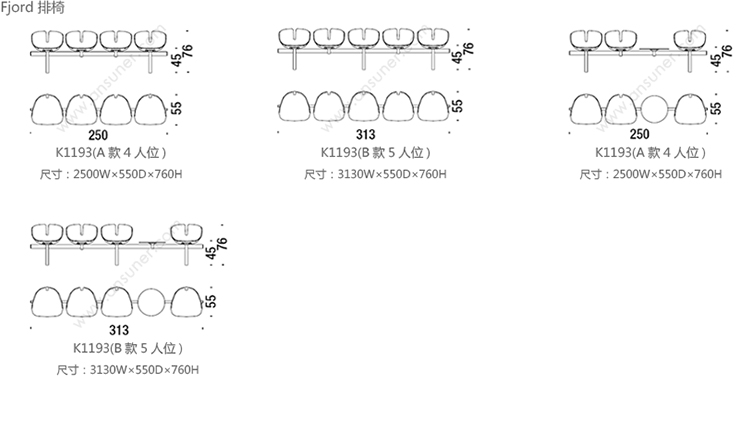 Fjord 等候排椅 系列尺寸/示意图