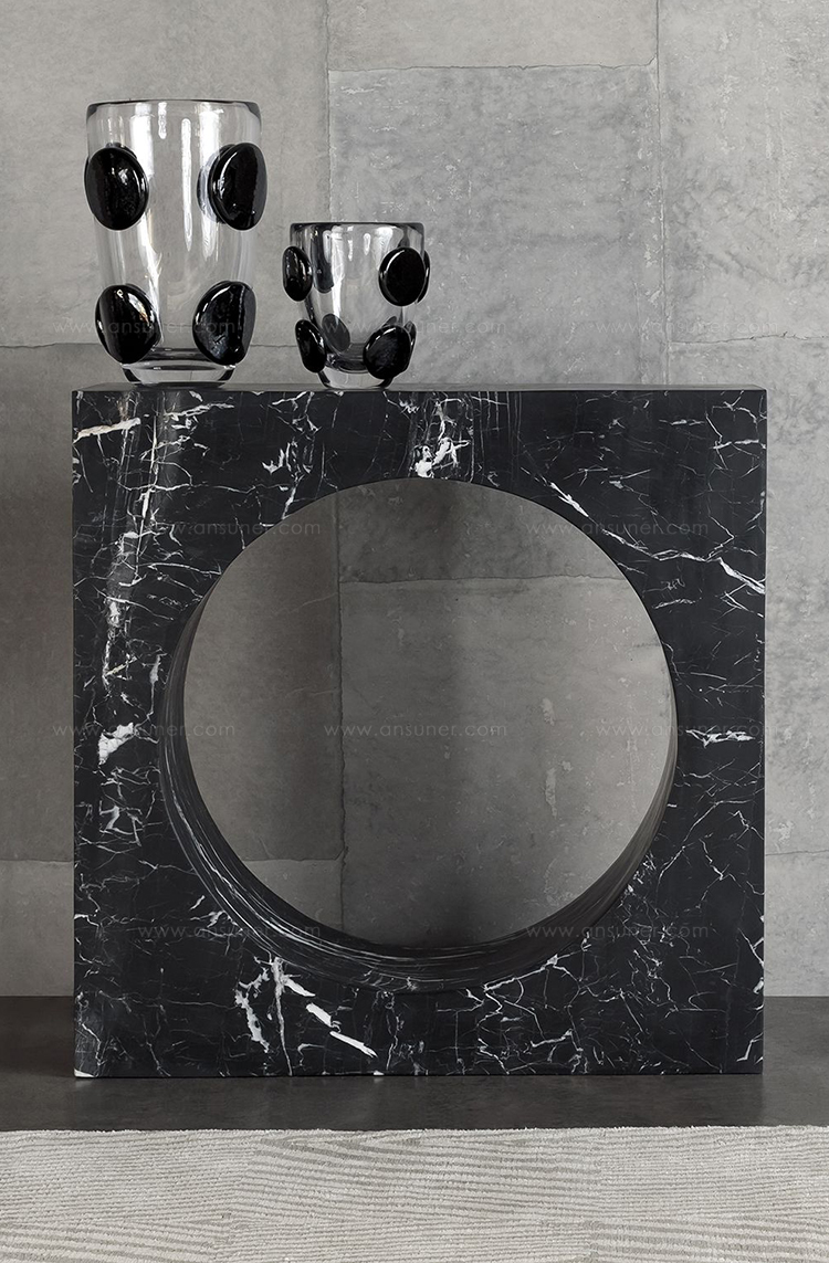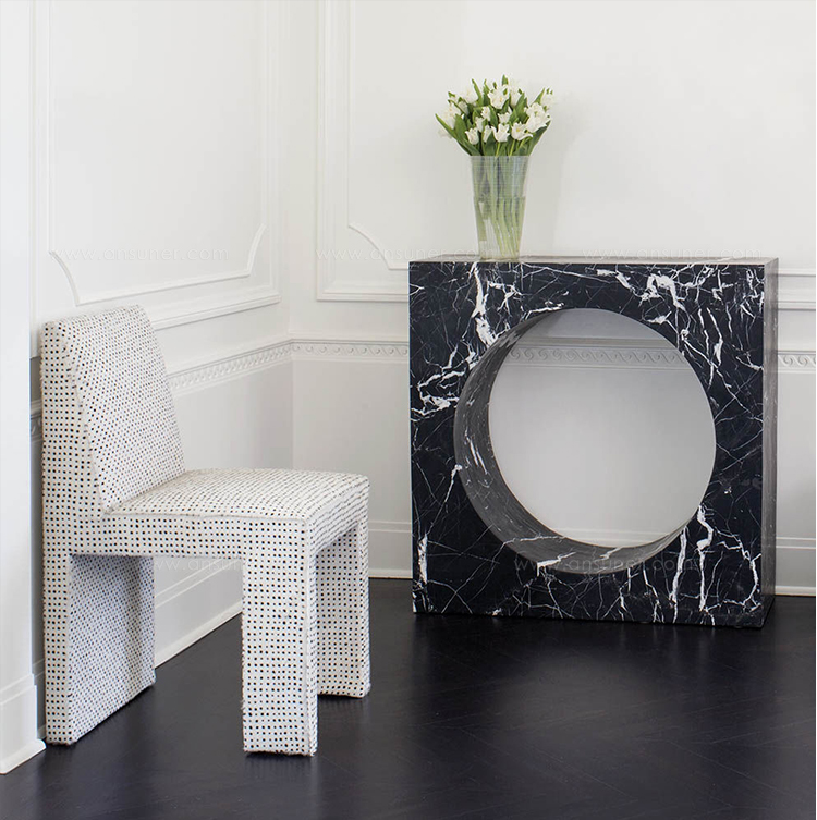 Selby Console(塞尔比玄关台)由大块坚固的大理石雕刻而成,是一种有机极简主义运动。 完美切割的中心圆柱体会产生戏剧性的负面空间。 大花大理石,密封和磨光丰富,具有华丽的运动。