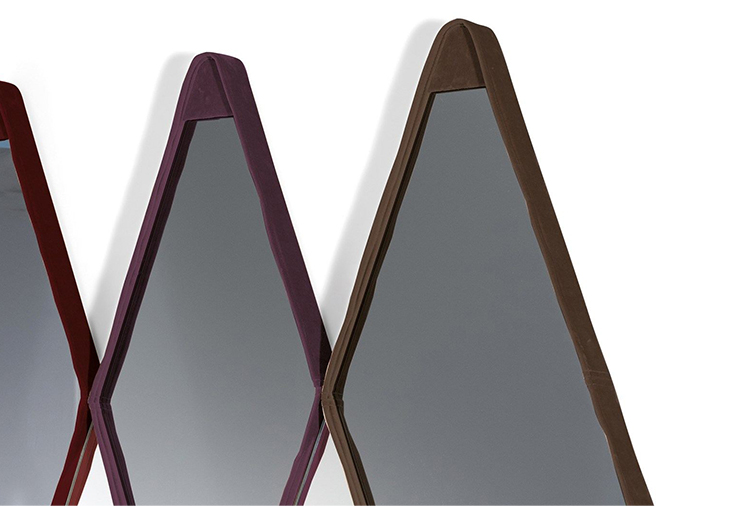 Gino Carollo设计的《名利场》(Vanity Fair)由镜子或烟熏玻璃制成。它以丝绒或皮革制成罩盖提供了一种严谨的精度和美感的效果,并与简单的菱形线形成对比。镜子可以是单、双、三、甚至是将模块并排放置在墙上。