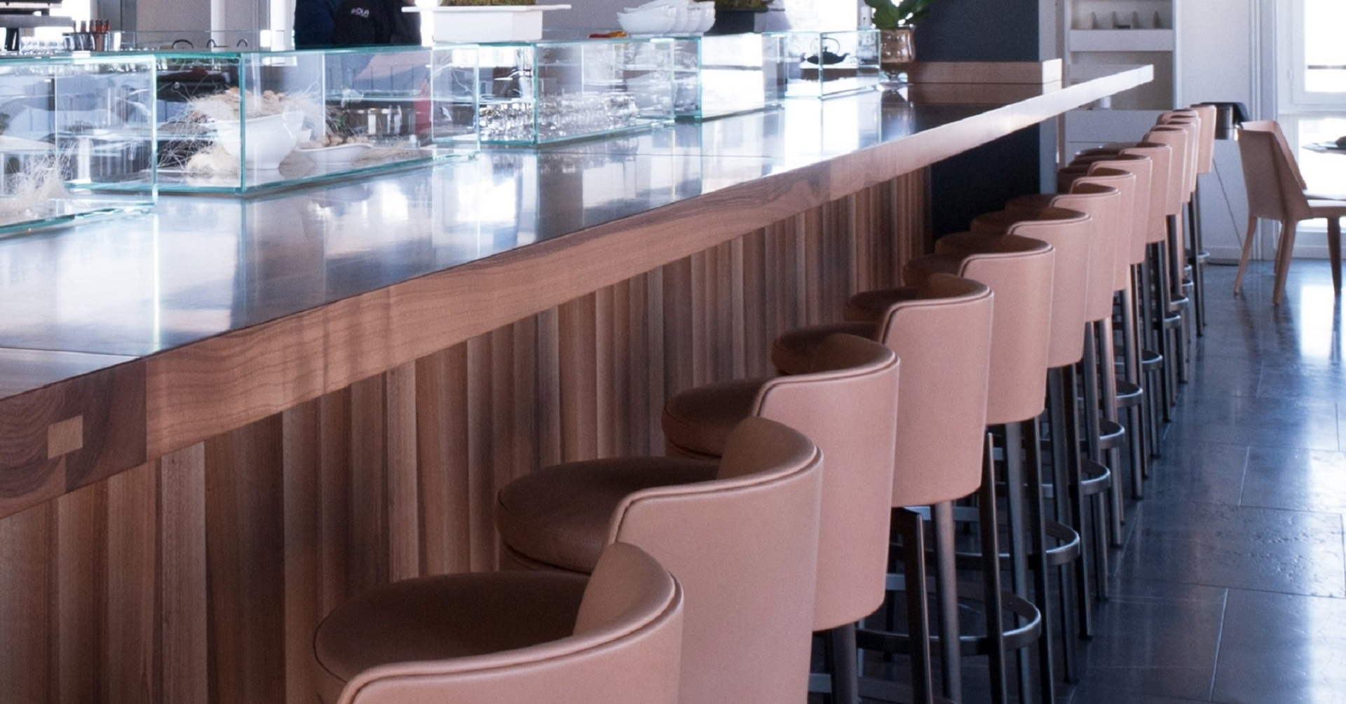 一个大的, 多才多艺的产品收集, 感觉好是一个沙发, 一个扶手椅, 一个餐椅, 一个简单的椅子, 一个凳子和一张床。特定的压铸铝腿和细长的外围带在皮革, 织物或麂皮沿基地运行设置产品分开。感觉很好传达一种浮动的轻盈感, 暗示着现代形式的永恒古典主义。
