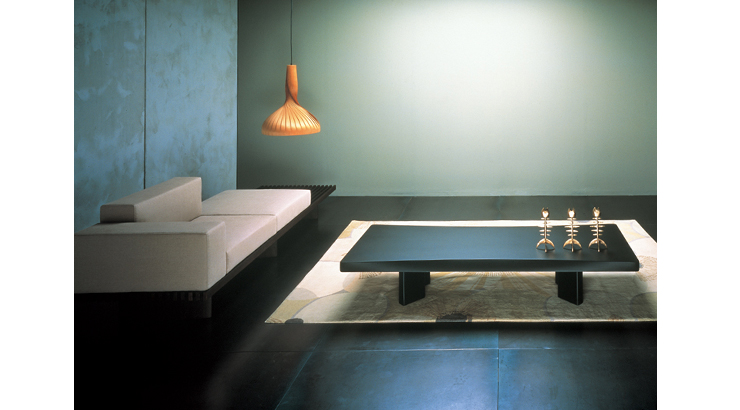采用哑光黑色的珍贵木材或黑色实木橡木或美国黑胡桃木制造的矮桌。桌面厚度和凹面刻画了正式用语中的模型特征,并创造了令人讶异的轻盈感。该款矮桌是于1969年为日本驻巴黎大使馆设计的,这款咖啡桌是技术和中继合成的胜利。