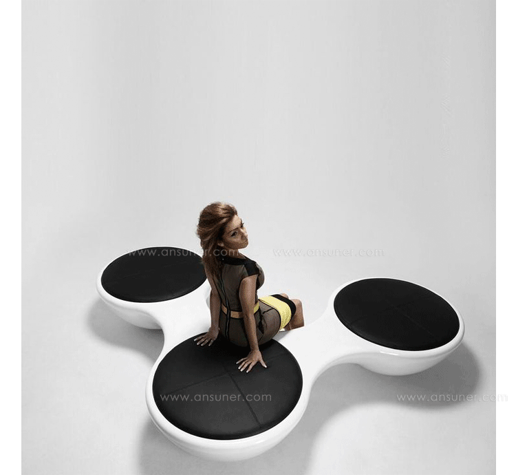 瑞典设计师Jangir Maddadi设计的这款联合座凳系列,可分为双座,三座及多坐,我司主要推出两座及三座,分别为:Union 2-seater Bench(联合双座凳)和Union 3-seater Bench(联合三座凳)。大家都知道,一般的座椅都是可以一个人或多个人一起坐,相互之间都不会受到影响。而这款连体休闲座椅却不同,外形很像一只陀螺,使用起来很像一个不倒翁,上面最多可以坐四个人。但是设计师并没有将这样的座椅让它们独立出现,而是用三张同样的座椅链接在一起,并且形成一个90度的直角,这样无论是陀螺还是不倒翁,都会很稳定的供给我们使用。当然,理论上来说,生产这种椅子,不仅可以做3件连体,4个,6个……都可以做。只是要考虑运输问题,或许3个是最完美的。这款连体休闲座椅不仅外形很优秀,而且还更加实用,使坐在上面的人有更多的空间,而且还可以保持面对面的互动。