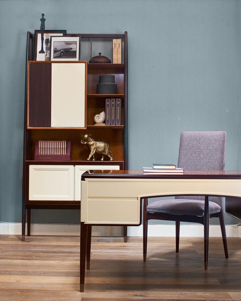 采用燕尾榫造型的拉手,符合成年人手型,不费力即可轻松打开;铜脚,赋予中式韵味的同时以防磨损。樱桃木纹给人更强的天然纹理感,侧面木板微带弧线,内敛中显露优雅。