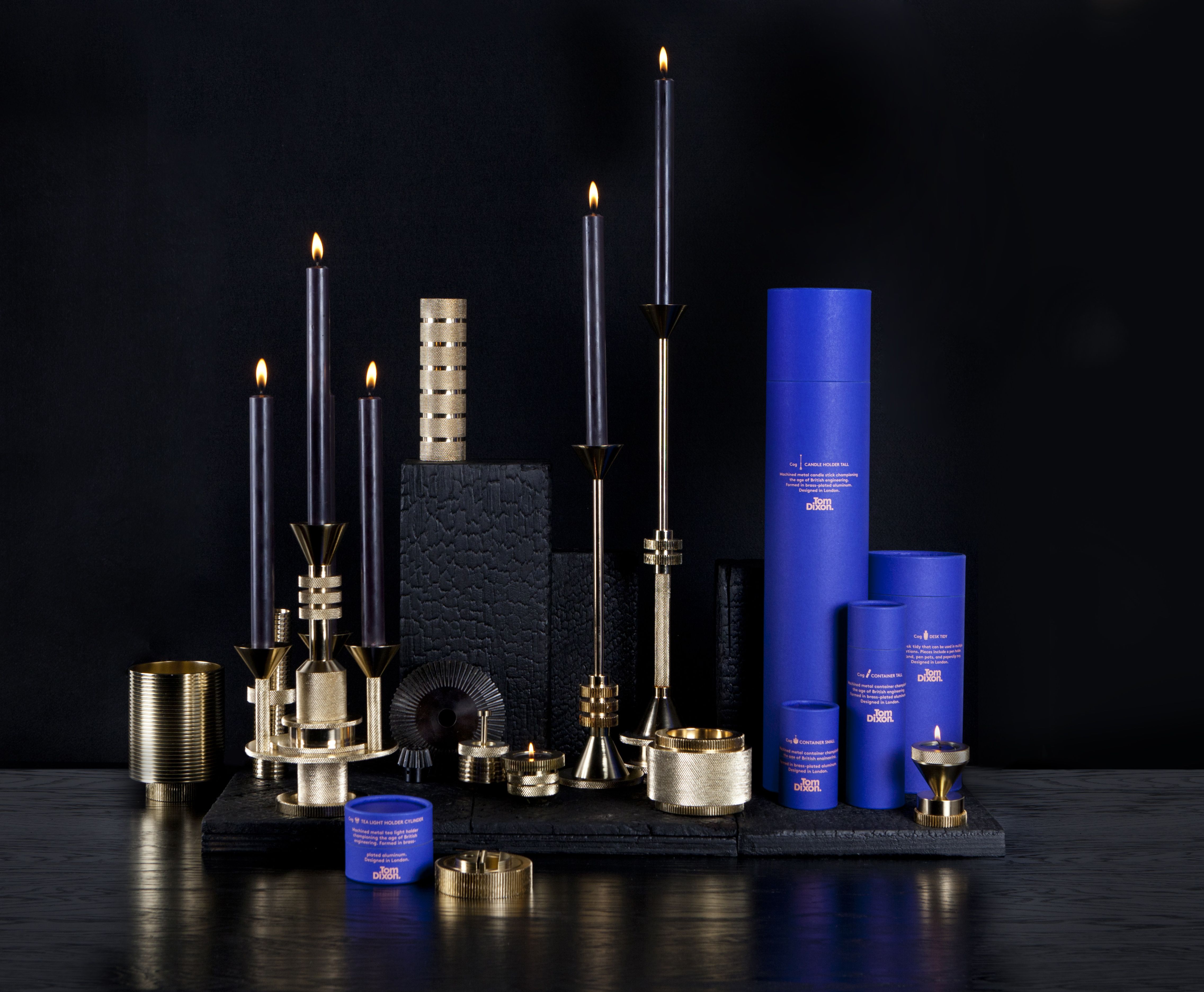 齿轮烛台可分为锥形或圆柱形。他们被设计用于各种配置和称赞在系列中的其他部分-整洁的办公桌,蜡烛烛台和烛台。