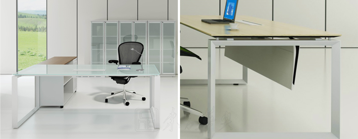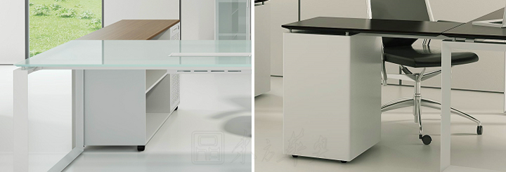 ※ 台面有多种选择,钢化玻璃、实木油漆、MFC板材。另外侧柜同样是多样化,满足使用者对办公空间的个性化需求。
