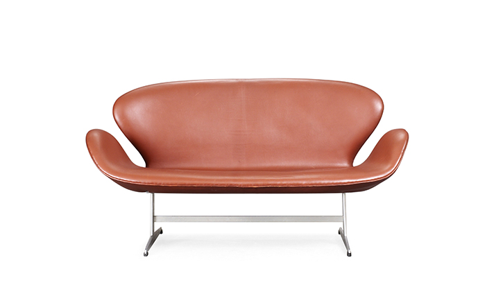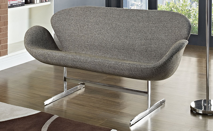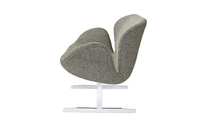 1958 年,Arne Jacobsen为哥本哈根皇家大酒店21楼房间的套房、 休息室和全景房设计的这套Swan Sofa(天鹅沙发)。天鹅沙发是两个坐席版本的天鹅椅,这个优雅的沙发设置在铝振动筛脚架上。优雅的和有机的形状非常适合休息室和等候区,以及家庭。雅各布森作为一个著名建筑师,同时也是一位非常成功的工业设计师,他为丹麦著名的FH家具公司〔FritzHansen〕设计了一系列座具家具,都成为市场欢迎的畅销产品。他的家具设计作品都是享誉国际的经典设计,天鹅椅就是其中之一;他将自由流畅的雕刻式塑形,以及北欧设计的传统特质相结合,使其作品具有质感非凡与结构完整的特点。天鹅椅制作采用玻璃钢框架内胆、内部填充高密度沙发棉、表面扪高级进口羊绒布料或PU或真皮、铝合金脚架(可振动)。