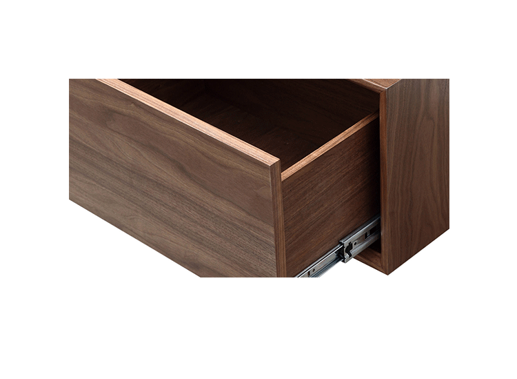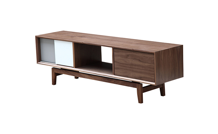 platform media cabinet(平台媒体橱柜)有着迷人的中世纪设计风格和当代形式巧妙融合,媒体橱柜主体平台由三组抽屉组成,中间的抽屉是敞开的,两侧的是滑动伸拉抽屉。在20世纪50年代末,60年代初, Finn Juhl和 Arne Vodder 最先尝试胶木和天然木的组合运用,并流行至今。这是大胆的创新,他们结合传统的新鲜的新兴技术与现代主义的概念。他们通过这些色彩绚烂的产品所实现的是令人印象深刻的比例的平衡。制作采用精选MDF板基材胡桃木或水曲柳木皮贴面、实木脚架、环保油漆喷涂,做工精湛,品质一流。