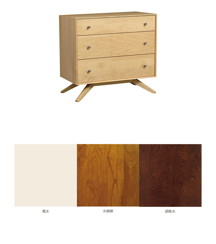 astrid 3 drawers dresser(阿斯特丽德3抽梳妆台)是Copeland Furniture公司astrid实木梳妆台系列之一,宽大的八字形脚架非常吸引人注目,制作并非易事,它其实是一个大工程,同时能引发无限期望和激情,3个平滑抽屉,可以给与提供许多存储空间。制作采用精选MDF板基材、进口美洲胡桃或水曲柳或枫木皮贴面、实木脚架、环保净味油漆喷涂、做工精湛。
