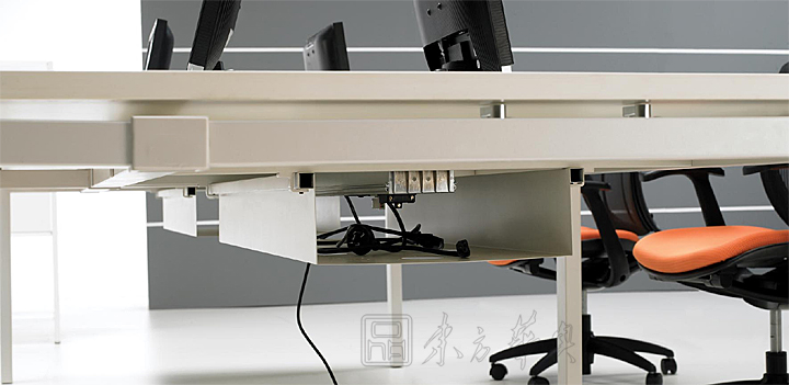 ※ 上图为会议台台下线盒细节展示,收纳电线避免凌乱,搁放插板插排方便,给我们一个整洁,干净的办公环境!