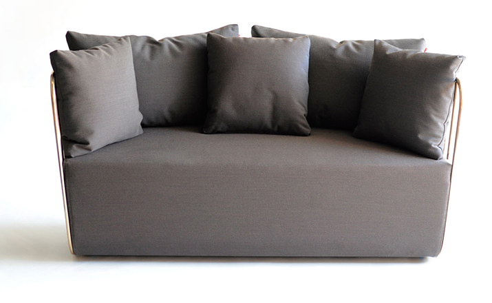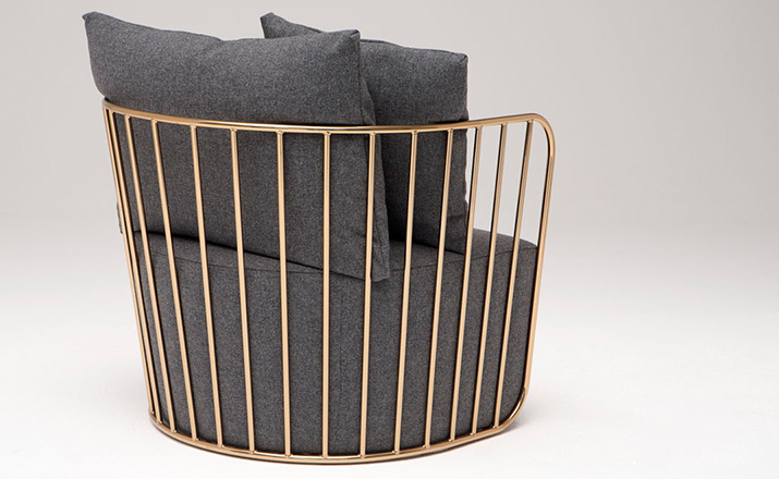"The Bride's Veil Stool family’s unique language is meant as a graceful alternative to the archetypal bar stool.The double stool is the perfect solution for you and your date to enjoy sitting together uninhibited by separate stools.The strikingly elegant metal base is available in smoked brass,polished chrome,burnt copper,or powder coat,while the top is offered in COM upholstery.At every angle these stools offer a visual treat."