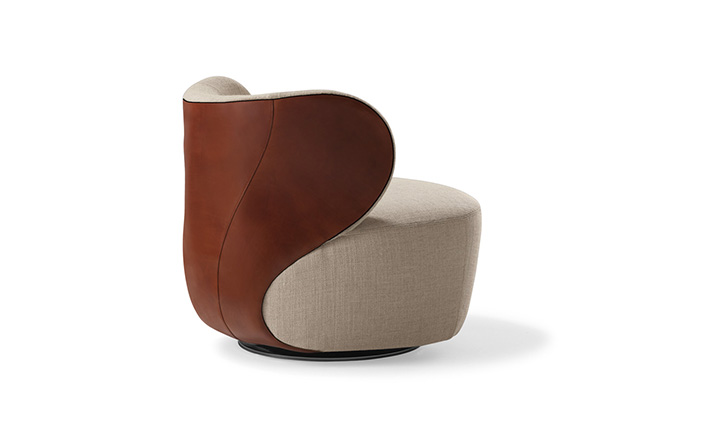 "宽敞和圆润,优美的曲线设计正是Bao Sofa(Bao沙发)最吸引人的地方。华丽的雕塑艺术的靠背,皮革拼凑在一起形成一个球状的样子。流畅的线条--简洁和优雅。扶手椅上结合材料,同时保持它们鲜明︰优雅马鞍皮革座椅背,纺织着天然织物。Bao Sofa(Bao沙发)就像给您一个欢迎的拥抱。新颖独特扪面方式:织物和皮革组合,扶手及整个座椅完全覆盖在织物或皮革。"