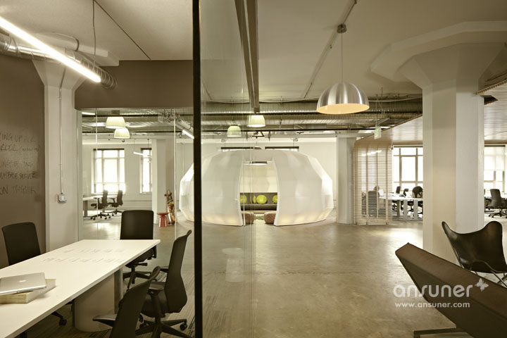 Runway社区,新兴创业者的孵化基地。设计的挑战在于如何将其打造成一个热情且具特色的办公空间,使其在众多同行中脱颖而出。设计团队以前卫的设计概念将这座位于Twitter大楼占地30,000平方英尺的孵化基地打造成一个时尚的社区,而非仅用以工作的办公场所。刚起步的创业者可租用一套桌椅或400平方英尺的区域空间。