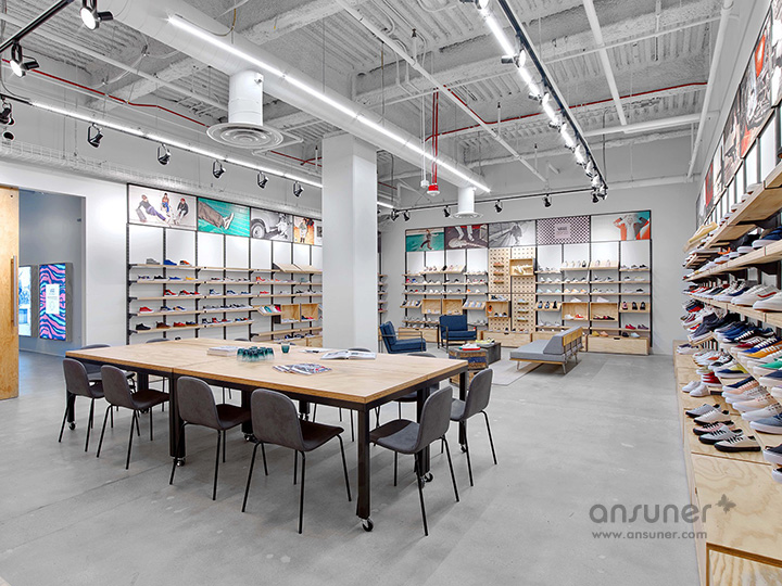 从最初的华夫底到标志性的条纹,Vans品牌已成为个人表达的代名词。通过对品牌的精准塑造,完美演绎了一家发源于美国西海岸的滑板公司逐步成长为年轻极限运动爱好者和潮流人士认同欢迎的世界性品牌。POP君也是第一眼就被这样的空间征服了。