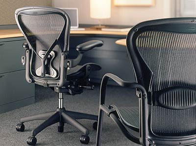 Aeron和Resolve系列家具,为高强度计算机工作者提供符合人体工学设计的支撑。
